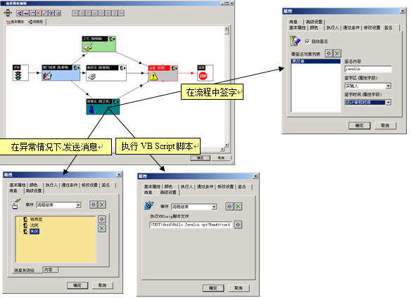 系統除了提供用戶可定制的流程模板功能外,在流程的每個步驟中都可以增加VB script解釋、即時消息觸發、簽名等功能。這些功能在我們企業的實際應用過程中有非常大的價值.在Javelin中,當一個審核流程完成(通過)后,系統會自動對被審核數據(如圖紙/工藝卡)進行數字簽名,并且發出相應的通知.