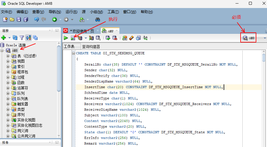 AM8數據庫創建成功后,按上述的方式 分別創建:OIOrg、OIFile、OIMobox