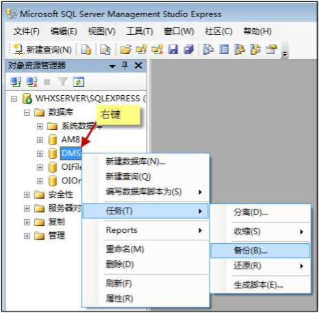 舉例:對Mobox系統(tǒng)的數據庫(老版本是DMS,新版本是 OIMobox ,這個根據實際情況)進行備份