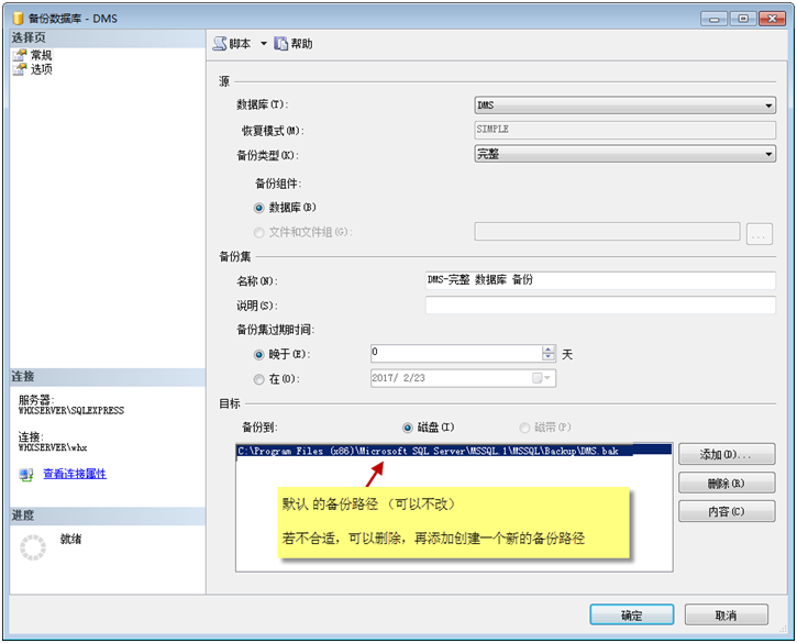 2)前面我們將mobox系統(tǒng)數據庫備份產生了?DMS.bak?文件,將這個文件拷貝到別的服務器,并以當天名稱加后綴,進行保存(如:DMS_20170222.bak).