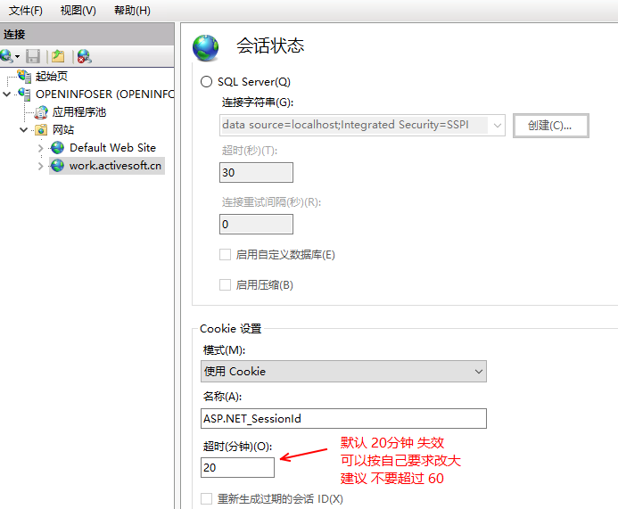 設置IIS的session (失效)過期時間(登陸后較長時間登錄有效) http://www.gamepre.cn/3155/ Mon, 20 Jan 2025 05:40:28 +0000 http://www.gamepre.cn/?p=3155 Mobox實施工程師希望,“mobox2一段時間不動,就需要刷新頁面,這個時間可以延長嗎,比如說頁面半個小時候沒人動,才需要刷新” 。這個需要設置設置下IIS的session 過期時間來實現